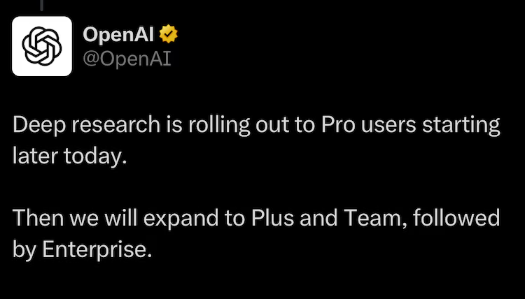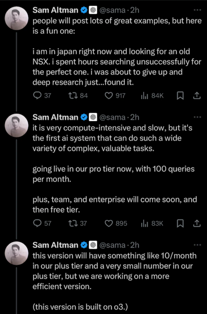 While GPT-4 excels in real-time, multimodal conversations, Deep Research is specifically designed for in-depth, domain-specific inquiries that require precision and extensive exploration. The agent’s ability to provide well-documented answers with verified sources makes it a powerful tool for generating reliable insights. OpenAI CEO Sam Altman highlighted the capabilities of Deep Research in a post on X (formerly Twitter), stating that while the model may be slower, it is the first AI capable of handling such a wide variety of complex and valuable tasks.
